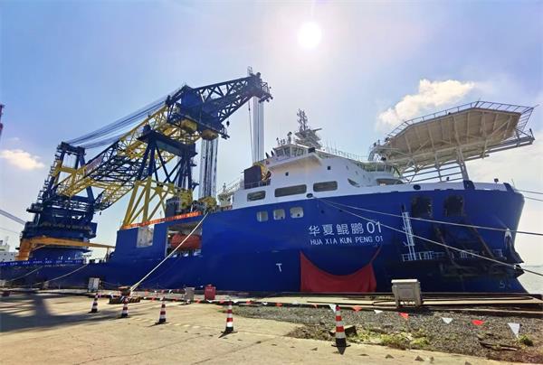 据悉,“华夏鲲鹏01”自航式全回转起重船长195米,型宽49.8米,型深16米,配备的主起重机双钩满载起重能力达5000吨,位列国内起重船第一梯队,也是为海上风电领域打造的重要装备,满足海上风电大型化、深远海化发展的需要,将为国家早日实现“双碳”目标贡献力量。